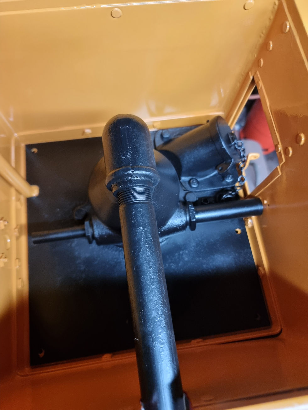 Had previously been subject to a basic restoration in castrol colours. We stripped the pump fully, finding evidence of the original Glico yellow inside and also under some old dirt hiding in corners which was then used to match the colour. The main components were blasted and painted (many coats of 2k primers and gloss top coat)